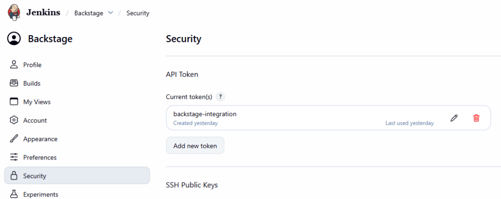 This token will become JENKINS_API_TOKEN for Backstage. I never commit it to Git.