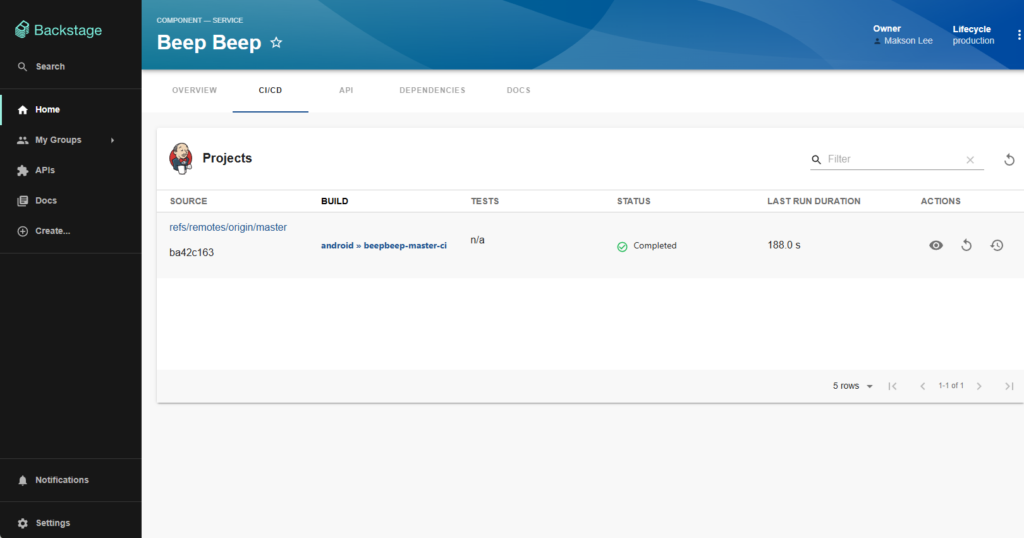 https://backstage.maksonlee.com. - Go to Catalog → Beep Beep (