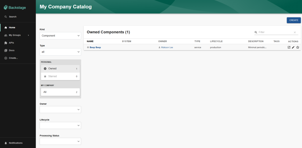 https://backstage.maksonlee.com. - Click Catalog → Components.