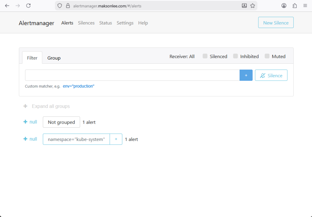 curl -vk https://alertmanager.maksonlee.com/api/v2/status | head