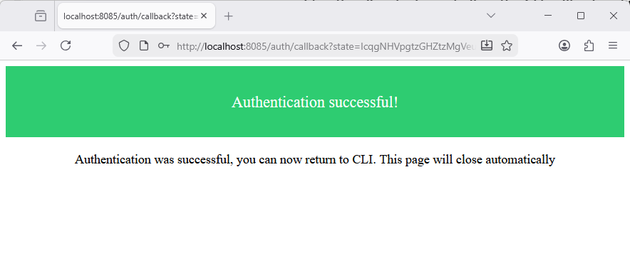 Because of the SSH -L tunnel, this request reaches the remote CLI listener, and you will see a success confirmation page.