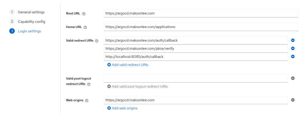 - Valid post logout redirect URIs: https://argocd.maksonlee.com/applications