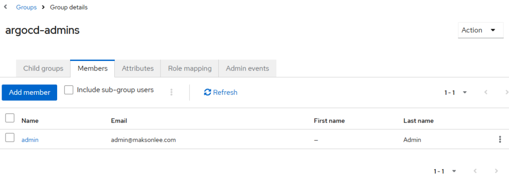 Keycloak users are not the same as Argo CD’s built-in local admin user. In this post, we grant permissions via Keycloak groups.