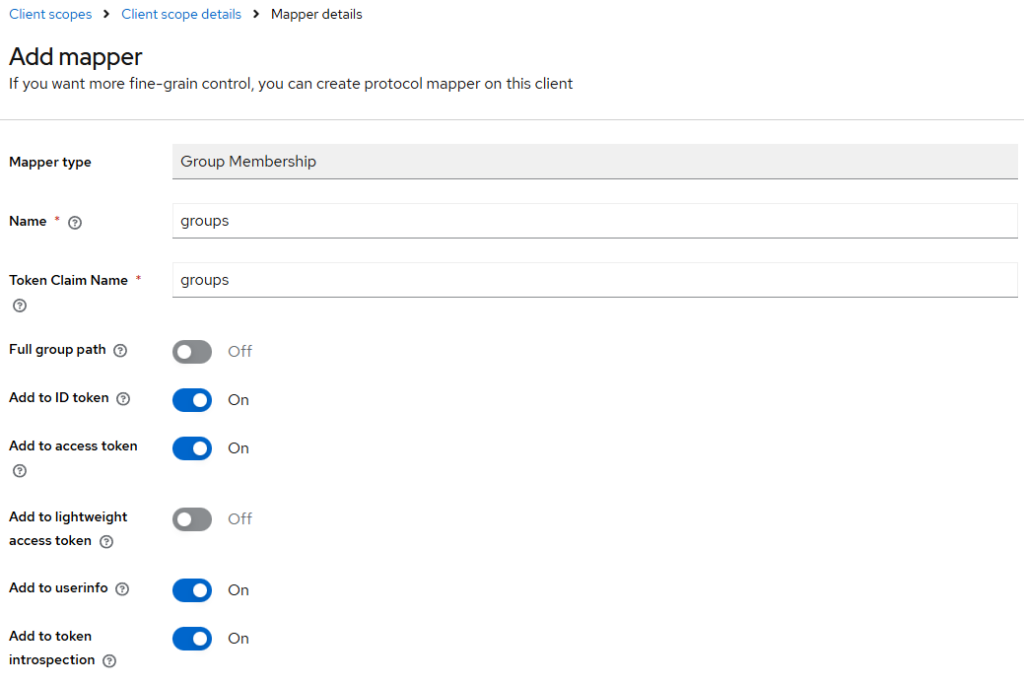 groupsclaim into Keycloak tokens (Client Scope + Mapper)