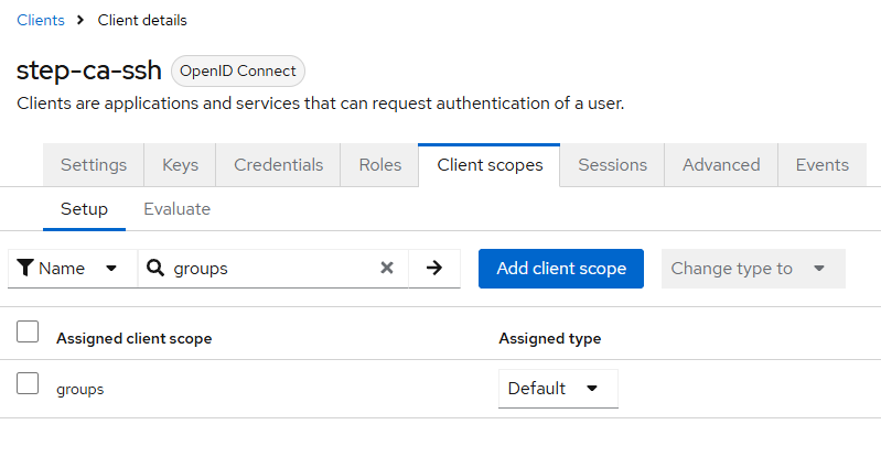• keycloak (OIDC) [client: step-ca-ssh]