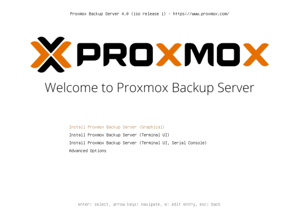 proxmox-backup-server_4.0-1.isofrom the Proxmox website. - Boot your server from this ISO: