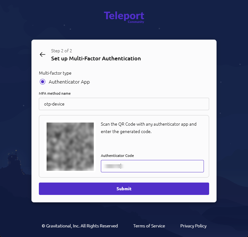 - Enter the 6-digit code and click Submit