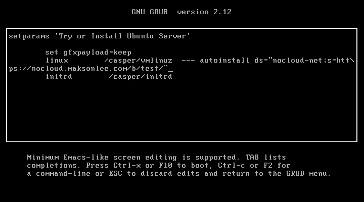 autoinstall ds="nocloud-net;s=https://nocloud.maksonlee.com/b/test/"