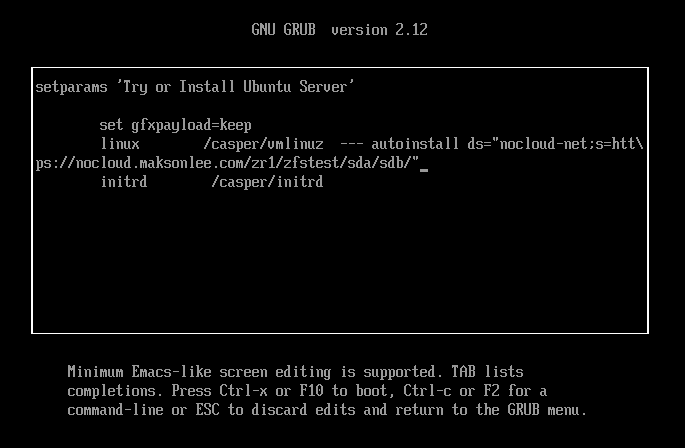 autoinstall ds="nocloud-net;s=https://nocloud.maksonlee.com/zr1/zfstest/nvme0n1/nvme1n1/"