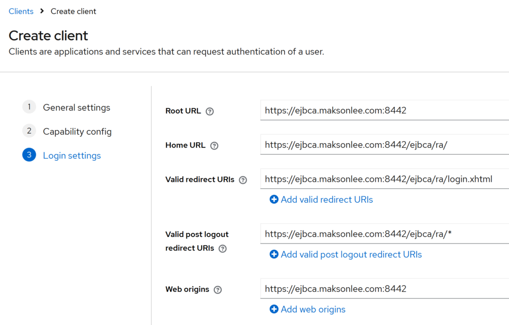 https://ejbca.maksonlee.com:8442/ejbca/ra/ - Valid redirect URIs: