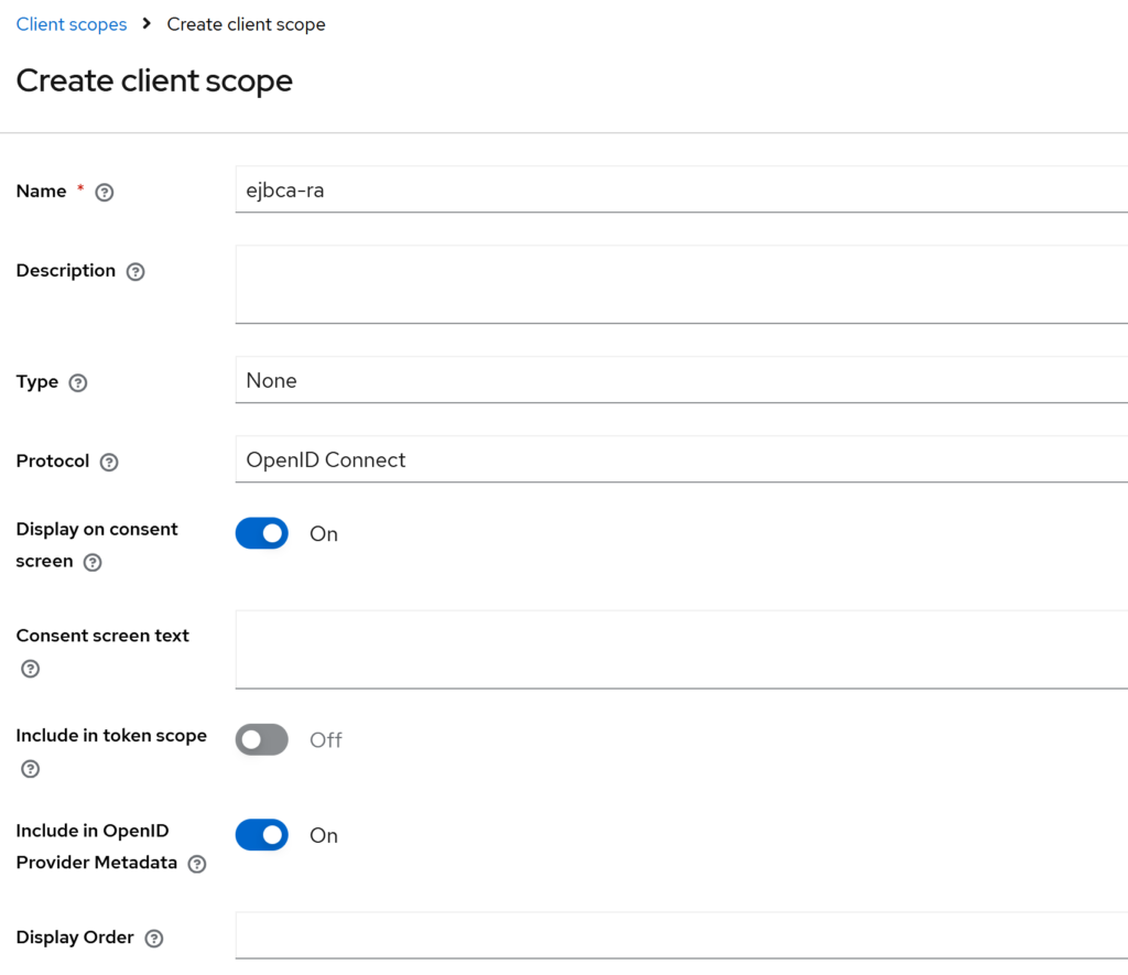 Keycloak → Clients → ejbca-ra → Client scopes → Add client scope