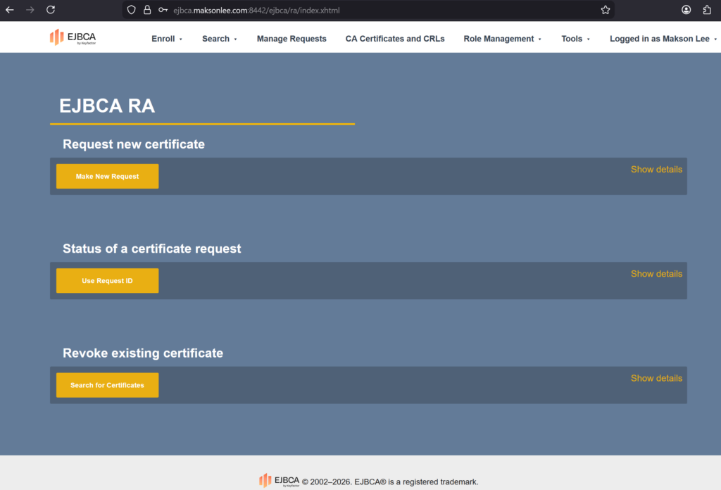 https://ejbca.maksonlee.com:8442/ejbca/ra/*