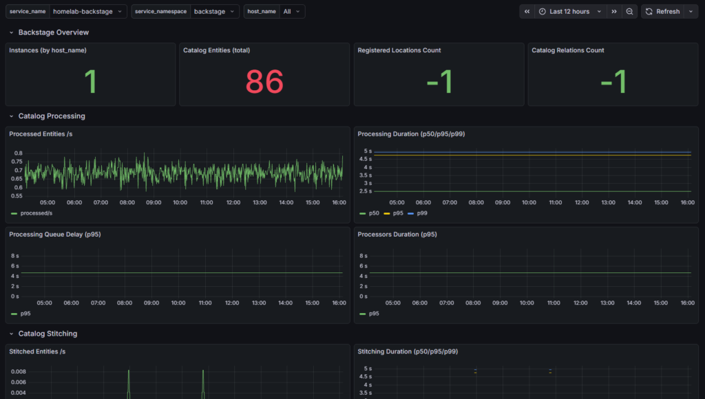 • Open your Backstage dashboard (or build one) and confirm panels populate.
